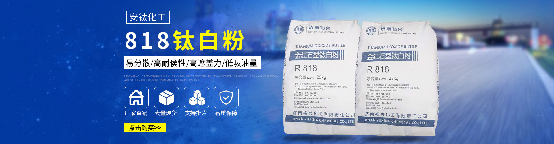常州安鈦化工有限公司經(jīng)銷批發(fā)的鈦白粉、沉淀硫酸鋇、立德粉、滑石粉、高嶺土、炭黑、云母粉、彩色顏料、氫氧化鈣、硅微粉、氧化鐵紅、氧化鐵黑、金紅石型鈦白粉、銳鈦型鈦白粉、進(jìn)口鈦白粉暢銷消費者市場,在消費者當(dāng)中享有較高的地位,公司與多家零售商和代理商建立了長期穩(wěn)定的合作關(guān)系。常州安鈦化工有限公司經(jīng)銷的鈦白粉、沉淀硫酸鋇、立德粉、滑石粉、高嶺土、炭黑、云母粉、彩色顏料、氫氧化鈣、硅微粉、氧化鐵紅、氧化鐵黑、金紅石型鈦白粉、銳鈦型鈦白粉、進(jìn)口鈦白粉品種齊全、價格合理。常州安鈦化工有限公司實力雄厚,重信用、守合同、保證產(chǎn)品質(zhì)量,以多品種經(jīng)營特色和薄利多銷的原則,贏得了廣大客戶的信任。